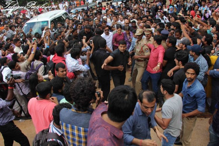 Bollywood actors Ajaya Devgan and kareena kapoor arrived Hyderabad for promotion of New Move singham Returns to promotion campaign at sultan –ul- uloom engineering college Banjara hills