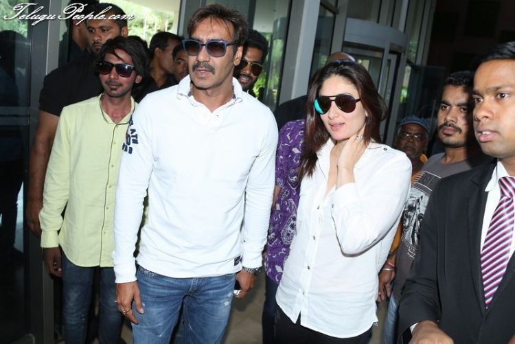 Bollywood actors Ajaya Devgan and kareena kapoor arrived Hyderabad for promotion of New Move singham Returns to promotion campaign at sultan –ul- uloom engineering college Banjara hills