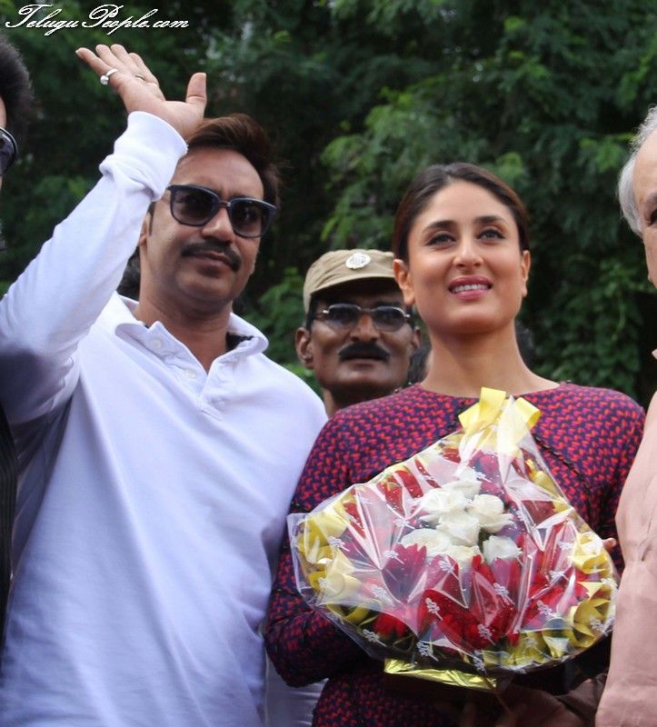Bollywood actors Ajaya Devgan and kareena kapoor arrived Hyderabad for promotion of New Move singham Returns to promotion campaign at sultan –ul- uloom engineering college Banjara hills