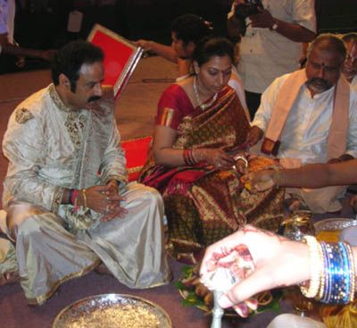 Lokesh, who was dressed in a Rajasthani suit, came in a vintage car while Brahmani, was carried in a decorated