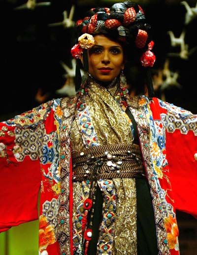 A model presents a creation by Indian designers Ashima and Leena at the Wills Lifestyle India Fashion Week Spring/Summer 2008 collection in New Delhi September 6, 2007. More than 40 designers will be showcasing their spring and summer collections for 2008 at the Wills Lifestyle India Fashion Week, vying to catch the attention of up to 80 international buyers during the five-day extravaganza.