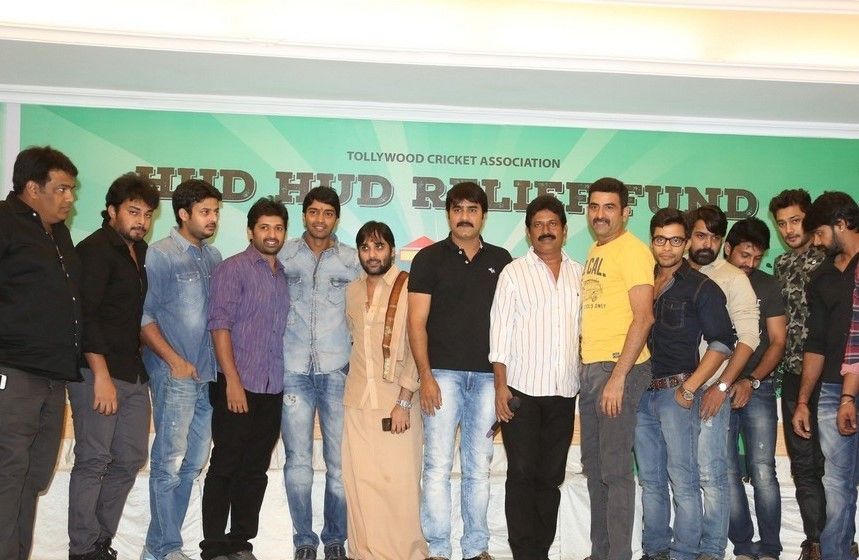 Tollywood Cricket Association is organizing a cricket match to raise funds for Hudhud relief activities. Actors Srikanth, Naresh, Naveen chandra, Tarun, Prince, Taneesh, Sashank and others participated in the event organized for its official announcement..