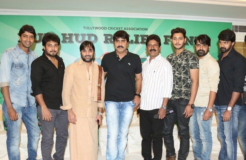 Tollywood Cricket Association is organizing a cricket match to raise funds for Hudhud relief activities. Actors Srikanth, Naresh, Naveen chandra, Tarun, Prince, Taneesh, Sashank and others participated in the event organized for its official announcement..