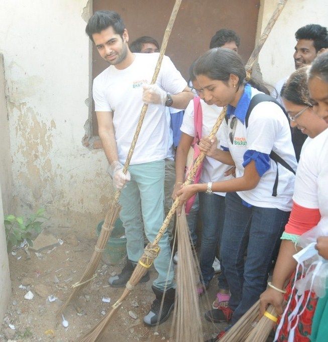 Young Hero Ram joined the Swacch Bharat campaign and took up cleaning activities in Sri Nagar colony, Hyderabad. He pledged for Clean India and requested every one to keep their surroundings clean.