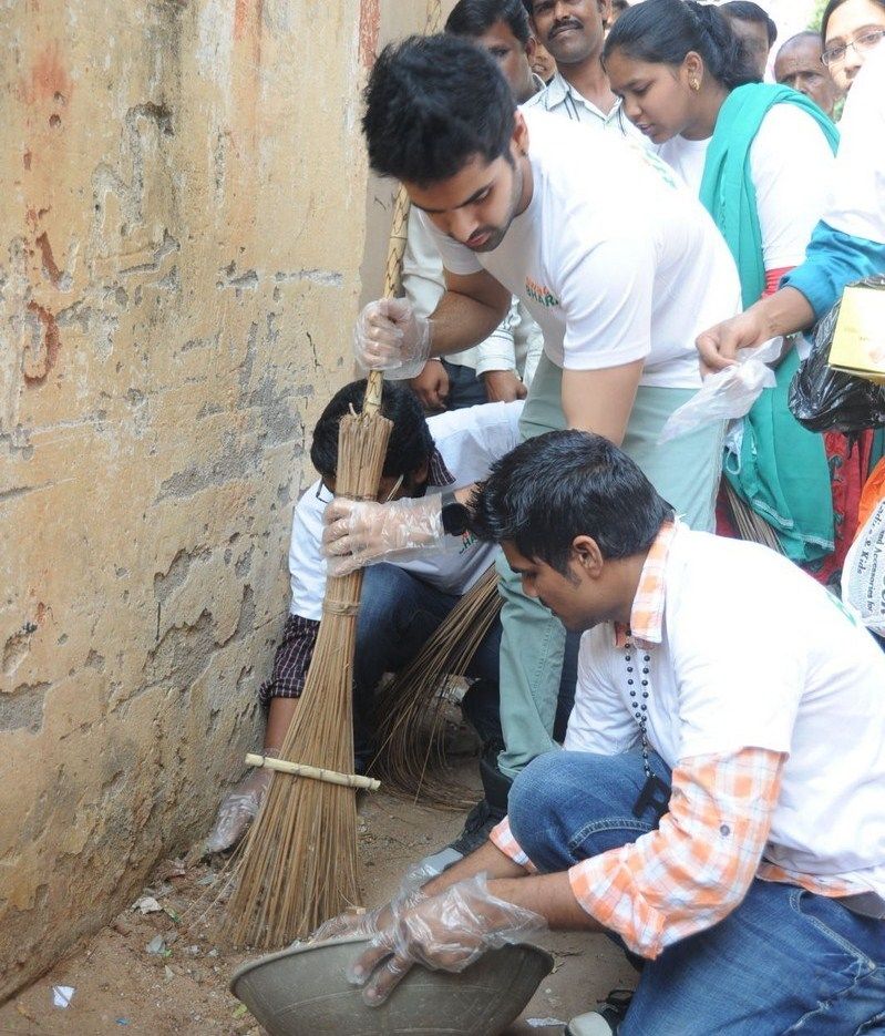 Young Hero Ram joined the Swacch Bharat campaign and took up cleaning activities in Sri Nagar colony, Hyderabad. He pledged for Clean India and requested every one to keep their surroundings clean.