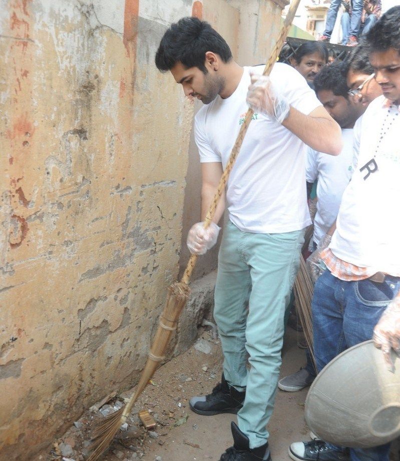 Young Hero Ram joined the Swacch Bharat campaign and took up cleaning activities in Sri Nagar colony, Hyderabad. He pledged for Clean India and requested every one to keep their surroundings clean.