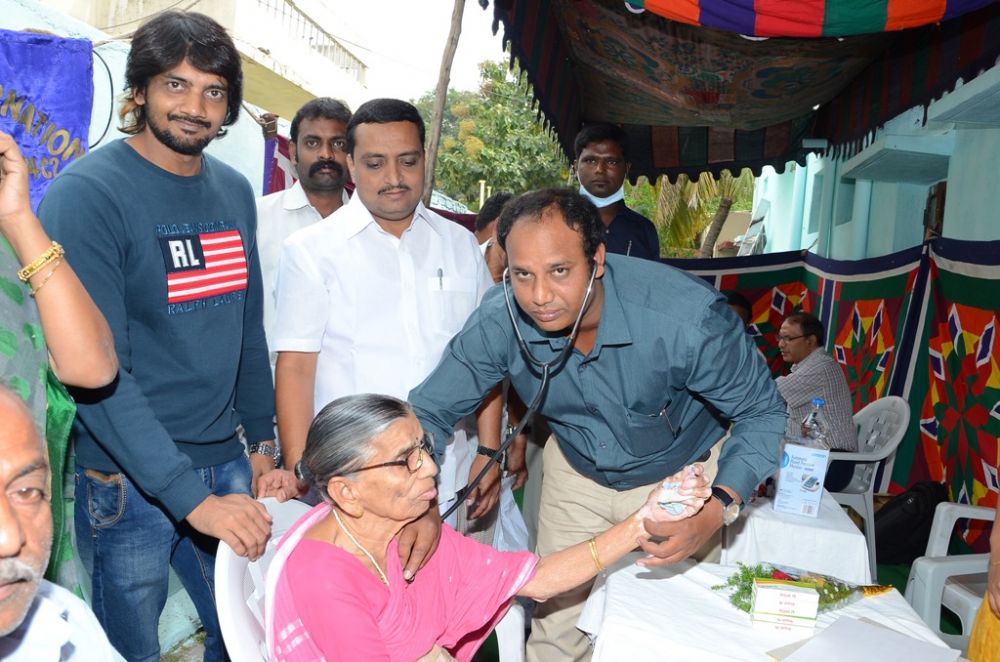 Young actor Sairam Shankar attended the 8th anniversary celebrations of Shiridi Sai old age home in Hyderabad and donated clothes to the poor.