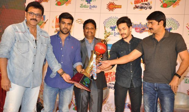 Many top celebrities from tollywood industry attended the curtain raiser of Memu Saitam Celebrity Cricket Tourney aimed to raise funds for Hudhud victims.
