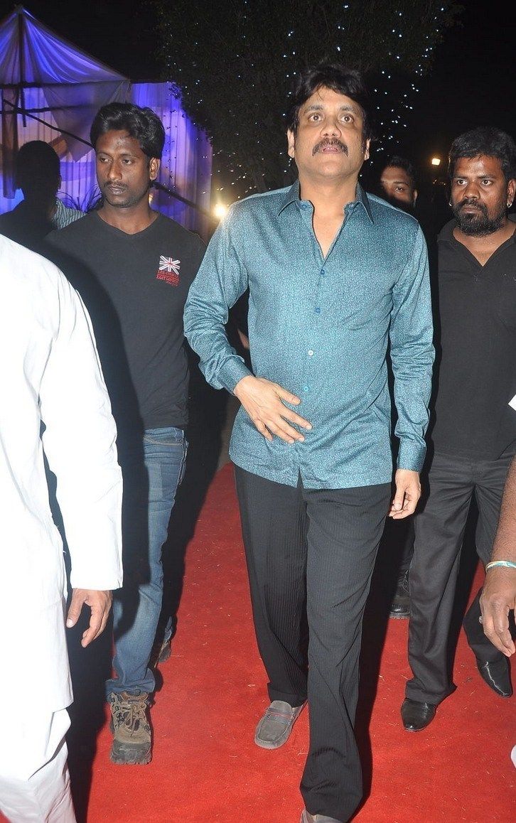 Eminent political and film personalities including Telangana CM Chandra Sekhara Rao, Etala Rajendar, Danam Nagendar, Chiranjeevi, Nagarjuna, Trivikram, Brahmanandam and many other celebrities attended Talasani Srinivas Yadav's daughter Swetha's wedding reception.