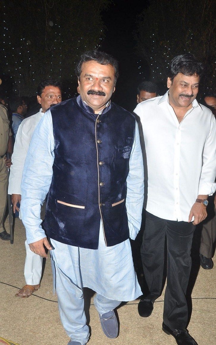 Eminent political and film personalities including Telangana CM Chandra Sekhara Rao, Etala Rajendar, Danam Nagendar, Chiranjeevi, Nagarjuna, Trivikram, Brahmanandam and many other celebrities attended Talasani Srinivas Yadav's daughter Swetha's wedding reception.