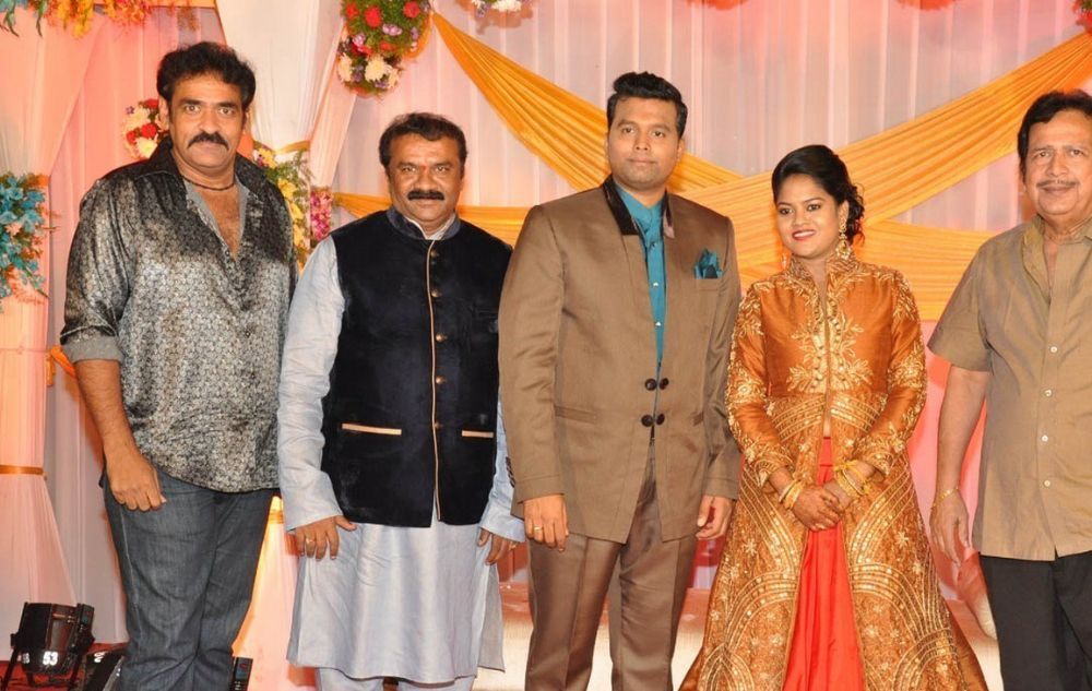 Eminent political and film personalities including Telangana CM Chandra Sekhara Rao, Etala Rajendar, Danam Nagendar, Chiranjeevi, Nagarjuna, Trivikram, Brahmanandam and many other celebrities attended Talasani Srinivas Yadav's daughter Swetha's wedding reception.
