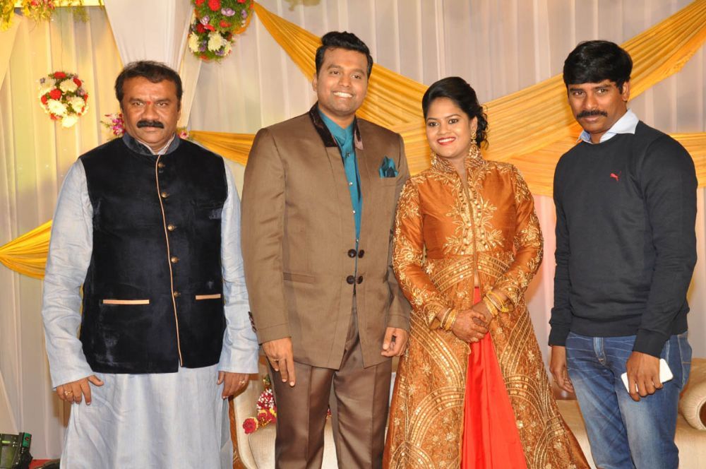 Eminent political and film personalities including Telangana CM Chandra Sekhara Rao, Etala Rajendar, Danam Nagendar, Chiranjeevi, Nagarjuna, Trivikram, Brahmanandam and many other celebrities attended Talasani Srinivas Yadav's daughter Swetha's wedding reception.