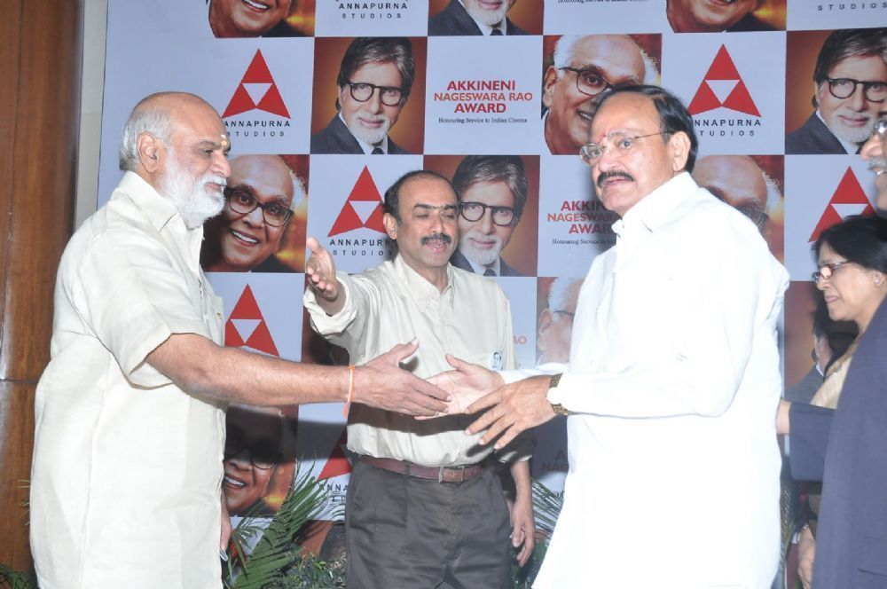 Amitabh Bachchan was presented with the prestigious ANR National award for his decades of dedication to Indian cinema at a glittering ceremony held at the Annapurna Studios in Hyderabad. Chief Minister of Telangana K. Chandrasekhar Rao and Parliamentary Affairs Minister M Venkaiah Naidu graced the occasion and presented the award to Mr.Bachchan. All the top celebrities from tollywood were present at the award ceremony.