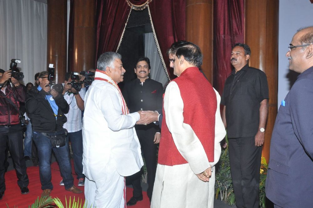 Amitabh Bachchan was presented with the prestigious ANR National award for his decades of dedication to Indian cinema at a glittering ceremony held at the Annapurna Studios in Hyderabad. Chief Minister of Telangana K. Chandrasekhar Rao and Parliamentary Affairs Minister M Venkaiah Naidu graced the occasion and presented the award to Mr.Bachchan. All the top celebrities from tollywood were present at the award ceremony.