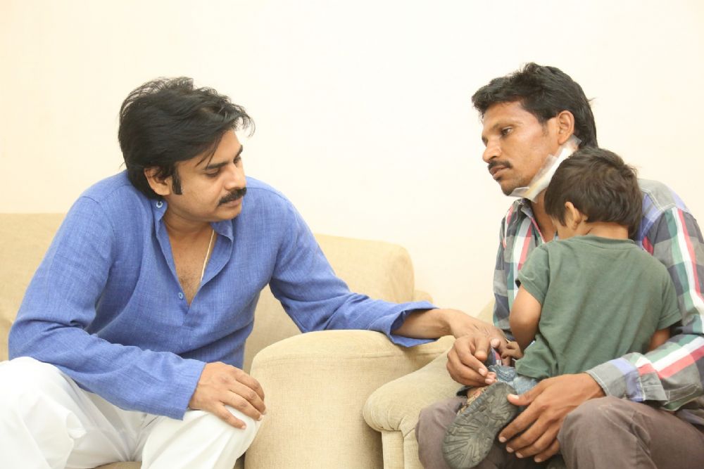 Pawan Kalyan met his fan Karuna Srinivas who was injured seriously during the audio release function of "Gopala Gopala". He gave 50,000 rupees to the victim's family and also paid all the medical expenses.