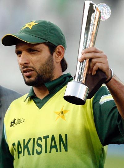 Pakistan s Shahid Afridi holds the Man of Series trophy after they lost to India in the ICC World Twenty20 cricket final match in Johannesburg September 24, 2007.