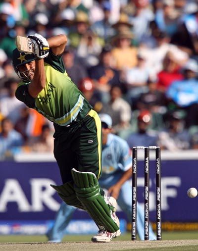 Pakistan s Younis Khan plays a shot during their ICC World Twenty20 cricket final match against India in Johannesburg September 24, 2007.
