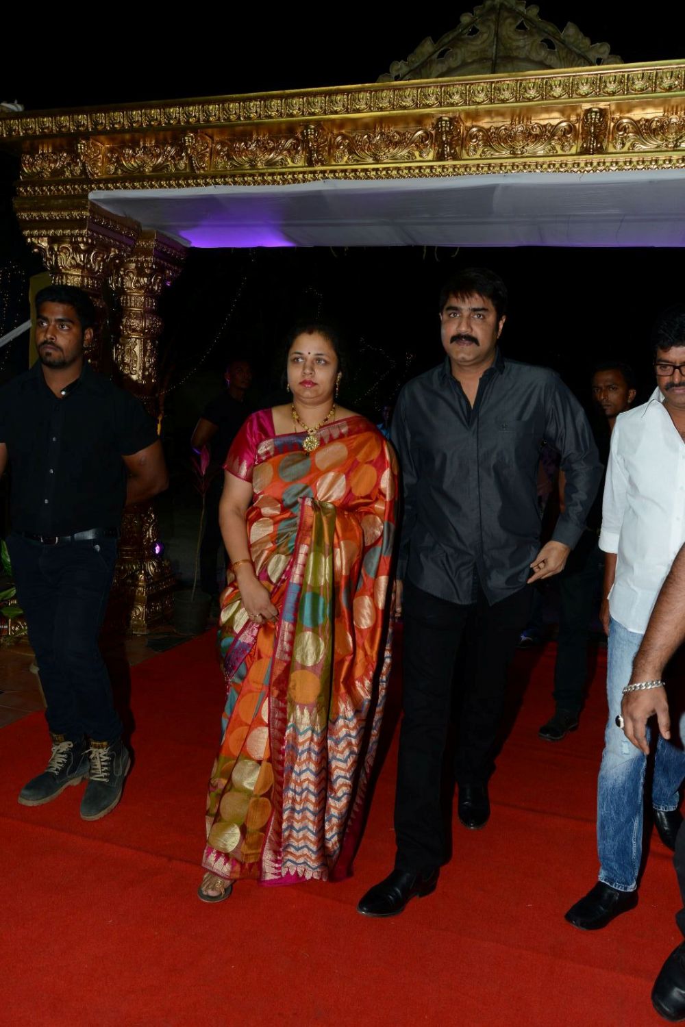 Actor Rajendra Prasad's son Balaji entered into wedlock with Siva Sankari. A grand wedding reception took place in Hyderabad in which Ramoji Rao, Radha Krishna, Chiranjeevi, Venkatesh, Trivikram, Allu Aravind and family, Brahmanandam and other star celebrities from Tollywood made their presence felt and blessed the couple.