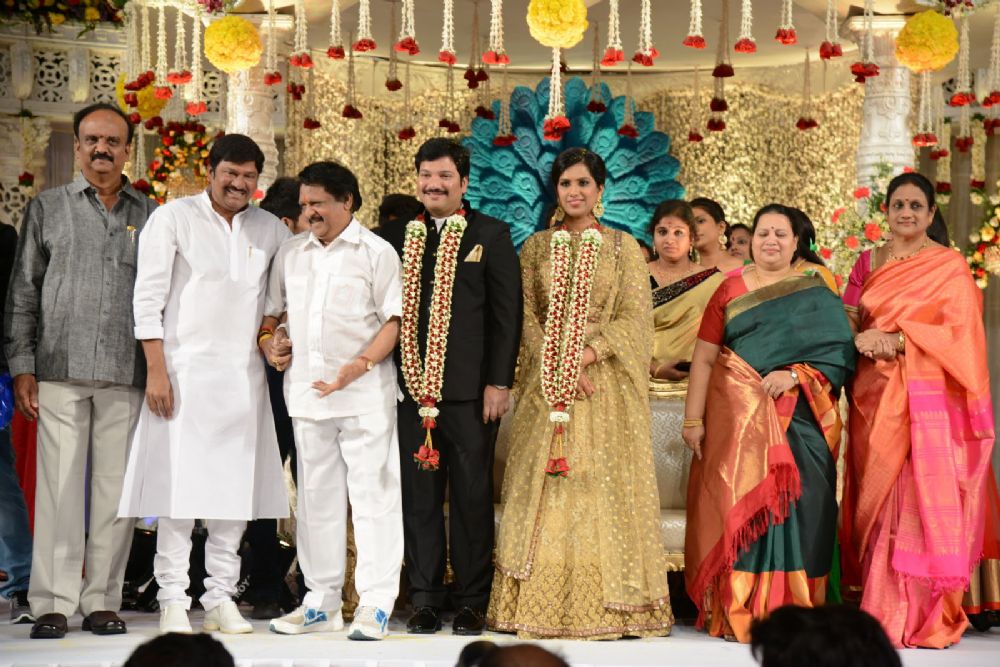 Actor Rajendra Prasad's son Balaji entered into wedlock with Siva Sankari. A grand wedding reception took place in Hyderabad in which Ramoji Rao, Radha Krishna, Chiranjeevi, Venkatesh, Trivikram, Allu Aravind and family, Brahmanandam and other star celebrities from Tollywood made their presence felt and blessed the couple.