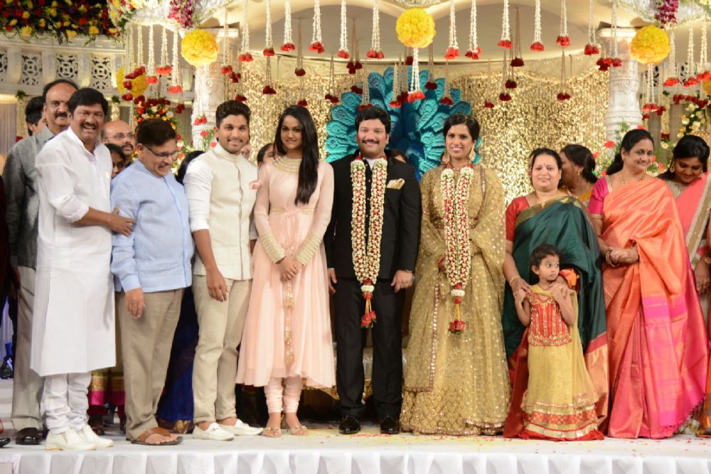 Actor Rajendra Prasad's son Balaji entered into wedlock with Siva Sankari. A grand wedding reception took place in Hyderabad in which Ramoji Rao, Radha Krishna, Chiranjeevi, Venkatesh, Trivikram, Allu Aravind and family, Brahmanandam and other star celebrities from Tollywood made their presence felt and blessed the couple.