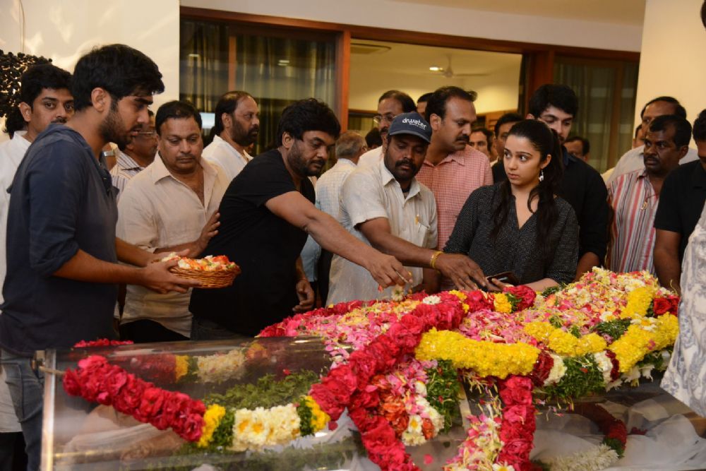 Tollywood film industry artists, technicians and politicians paid their last respects to the renowned producer and Dadasaheb Phalke award winner D.Ramanaidu who breathed his last today fighting cancer. AP CM Chandrababu Naidu, YS Jagan, Ponnala Lakshmaiah, Ramoji Rao, Chiranjeevi, Nagarjuna, Pawan Kalyan, Jr.Ntr, Rajamouli, Trivikram and other celebrities were among the visitors.
