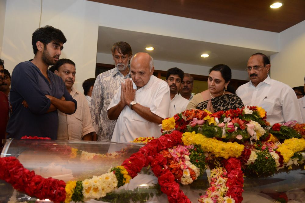 Tollywood film industry artists, technicians and politicians paid their last respects to the renowned producer and Dadasaheb Phalke award winner D.Ramanaidu who breathed his last today fighting cancer. AP CM Chandrababu Naidu, YS Jagan, Ponnala Lakshmaiah, Ramoji Rao, Chiranjeevi, Nagarjuna, Pawan Kalyan, Jr.Ntr, Rajamouli, Trivikram and other celebrities were among the visitors.
