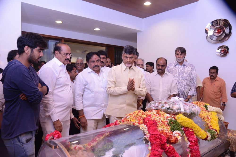 Tollywood film industry artists, technicians and politicians paid their last respects to the renowned producer and Dadasaheb Phalke award winner D.Ramanaidu who breathed his last today fighting cancer. AP CM Chandrababu Naidu, YS Jagan, Ponnala Lakshmaiah, Ramoji Rao, Chiranjeevi, Nagarjuna, Pawan Kalyan, Jr.Ntr, Rajamouli, Trivikram and other celebrities were among the visitors.