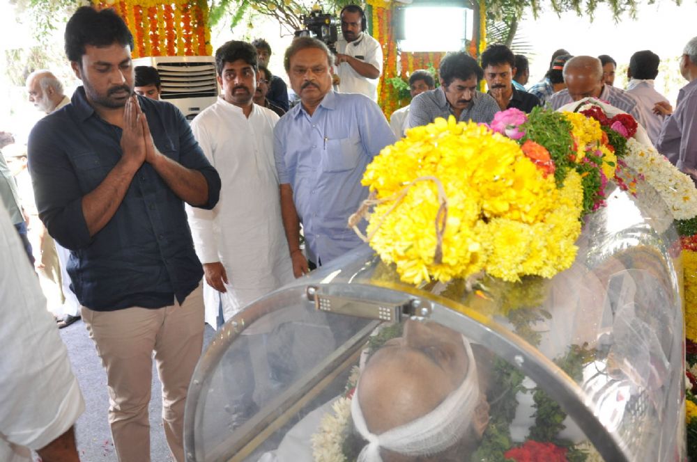 Producer Daggubati Ramanaidu was cremated with state honours at Hyderabad's Ramanaidu Studios this afternoon. His elder son Suresh Babu, lit the funeral pyre. Telangana CM KCR, Home Minister Nayini Narsimha Reddy, Sridevi, Anil Kapoor, Jayaprada, Prabhas, Chiranjeevi and Nagarjuna were among the prominent people who visited to pay their last respects to the legendary man.