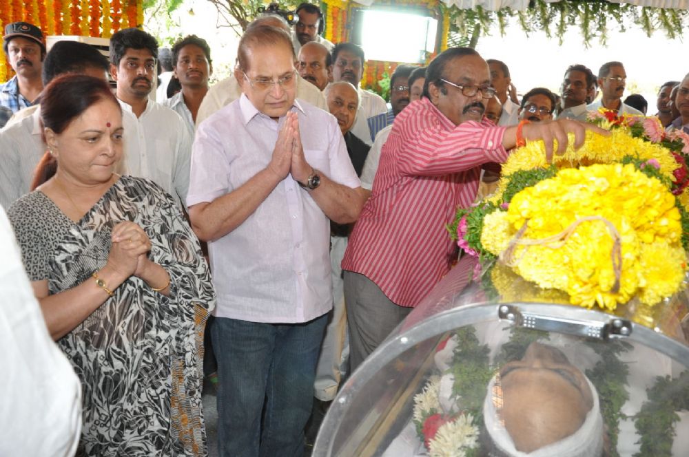 Producer Daggubati Ramanaidu was cremated with state honours at Hyderabad's Ramanaidu Studios this afternoon. His elder son Suresh Babu, lit the funeral pyre. Telangana CM KCR, Home Minister Nayini Narsimha Reddy, Sridevi, Anil Kapoor, Jayaprada, Prabhas, Chiranjeevi and Nagarjuna were among the prominent people who visited to pay their last respects to the legendary man.