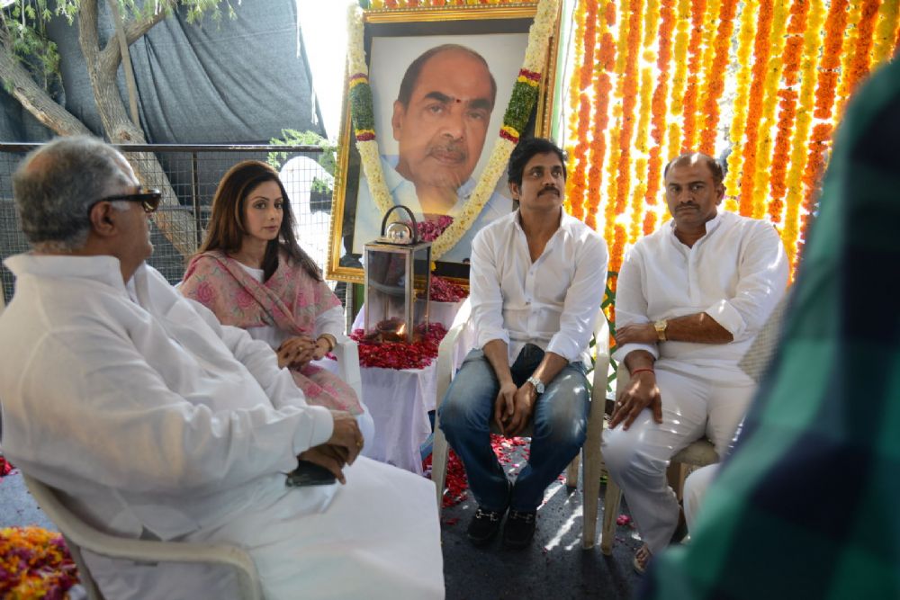 Producer Daggubati Ramanaidu was cremated with state honours at Hyderabad's Ramanaidu Studios this afternoon. His elder son Suresh Babu, lit the funeral pyre. Telangana CM KCR, Home Minister Nayini Narsimha Reddy, Sridevi, Anil Kapoor, Jayaprada, Prabhas, Chiranjeevi and Nagarjuna were among the prominent people who visited to pay their last respects to the legendary man.