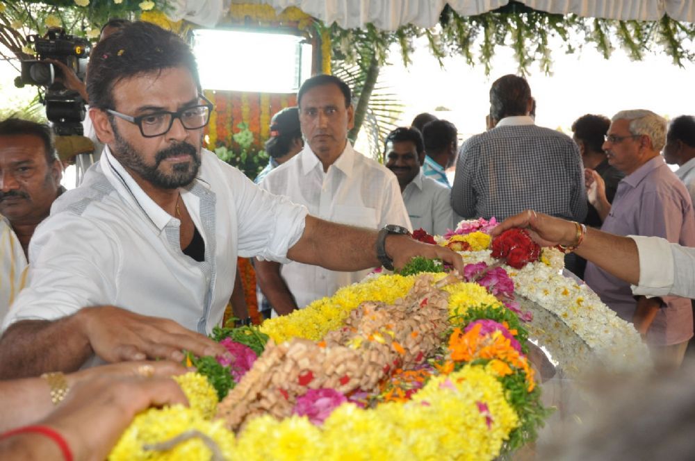 Producer Daggubati Ramanaidu was cremated with state honours at Hyderabad's Ramanaidu Studios this afternoon. His elder son Suresh Babu, lit the funeral pyre. Telangana CM KCR, Home Minister Nayini Narsimha Reddy, Sridevi, Anil Kapoor, Jayaprada, Prabhas, Chiranjeevi and Nagarjuna were among the prominent people who visited to pay their last respects to the legendary man.