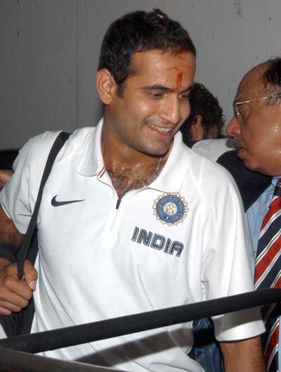 Twenty-20 World Cup winner team member Irfan Pathan arriving at Chhatrapati Shivaji airport in Mumbai on Wednesday.