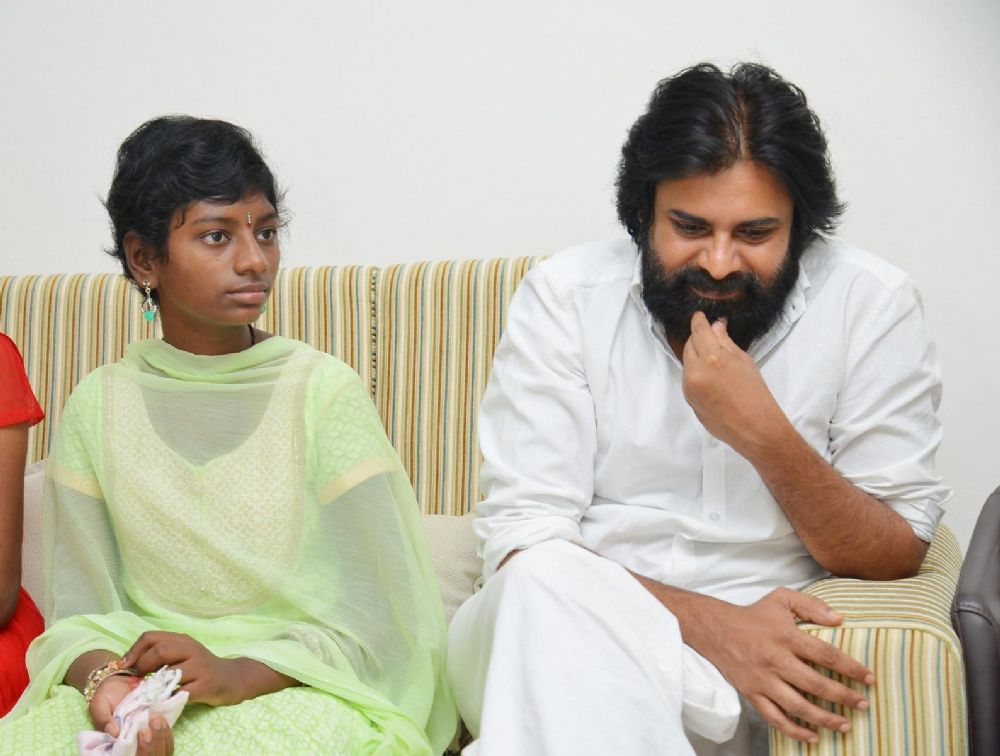 Pawan kalyan fulfilled the wish of a terminally ill 12-year-old fan Srija, who was diagnosed with a brain tumour. Finally she recovered from Brain tumour and met Pawan Kalyan in his office.