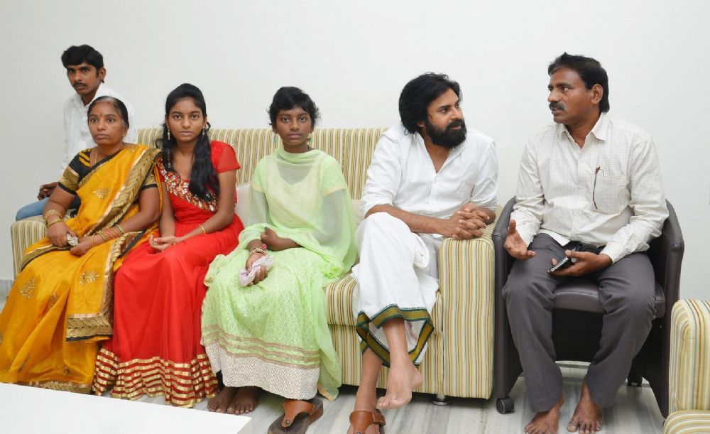 Pawan kalyan fulfilled the wish of a terminally ill 12-year-old fan Srija, who was diagnosed with a brain tumour. Finally she recovered from Brain tumour and met Pawan Kalyan in his office.