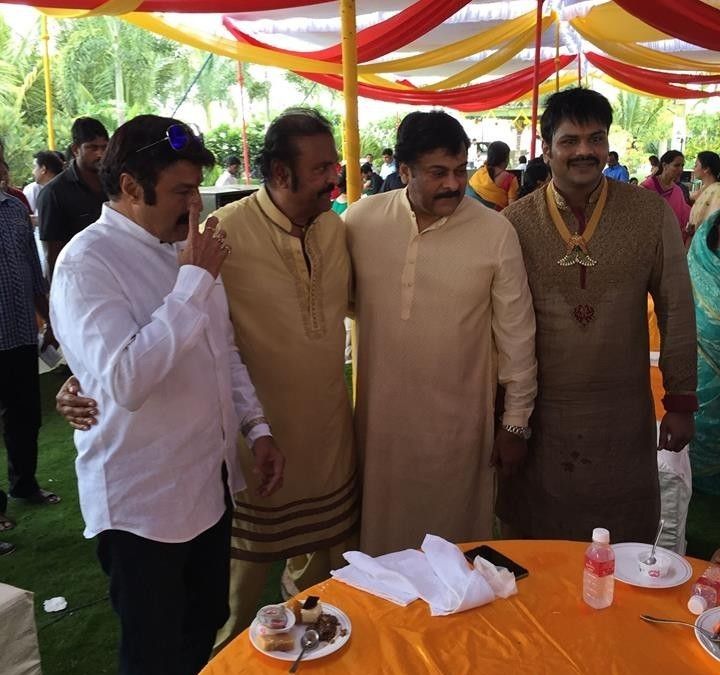 Manchu Manoj groom ceremony is held at their farm house in Shamshabad. Many stars including Chiranjeevi and Bala krishna attended the event.