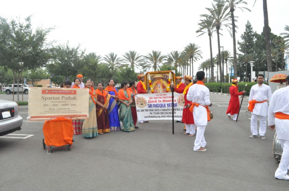 NATS 4th Telugu Sambaralu on day two started with the devotional activities in Los Angeles. Actor and MLA Nandamuri Balakrishna, Justice Noothi Ramamohan Rao, Ambika Krishna, Errabelli Dayakararao, actors Ali, Sai Kumar, Kota Sankararao and others participated in Sai baba Palanquin seva.