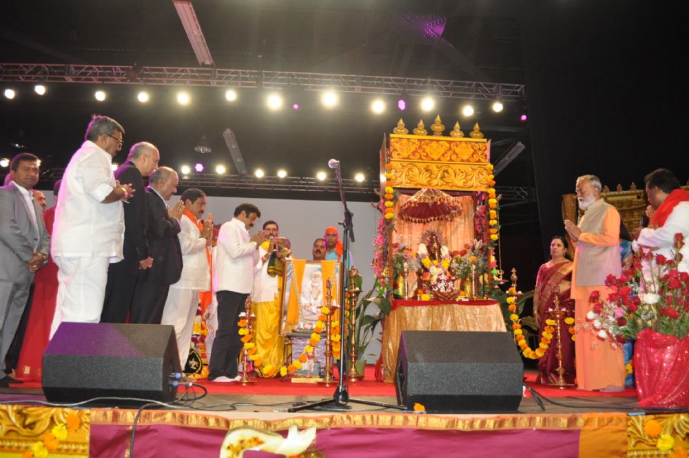NATS 4th Telugu Sambaralu on day two started with the devotional activities in Los Angeles. Actor and MLA Nandamuri Balakrishna, Justice Noothi Ramamohan Rao, Ambika Krishna, Errabelli Dayakararao, actors Ali, Sai Kumar, Kota Sankararao and others participated in Sai baba Palanquin seva.
