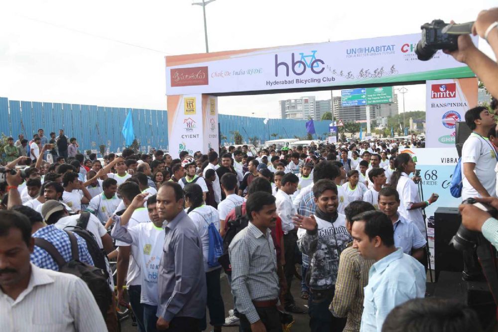 Actor Mahesh Babu along with Jagapathi Babu flags off Check De India Bycycle ride in Hyderabad