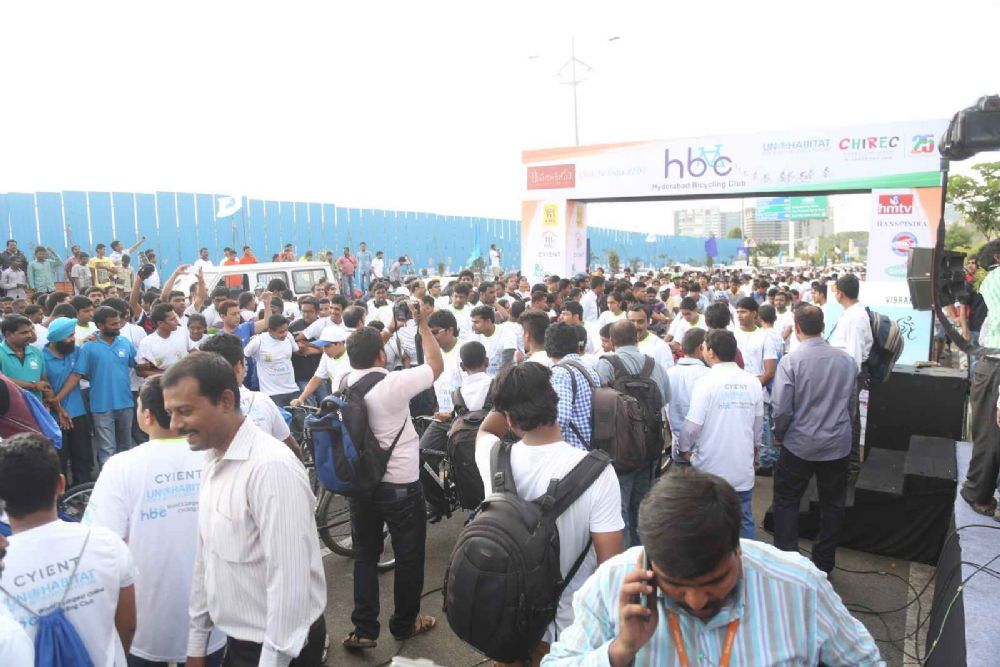 Actor Mahesh Babu along with Jagapathi Babu flags off Check De India Bycycle ride in Hyderabad
