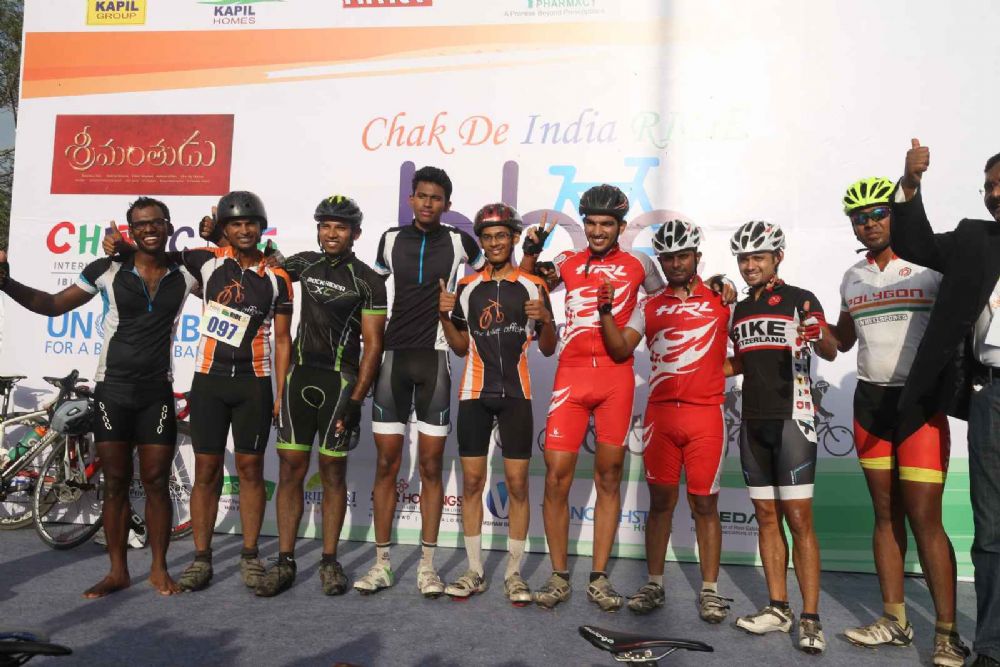 Actor Mahesh Babu along with Jagapathi Babu flags off Check De India Bycycle ride in Hyderabad