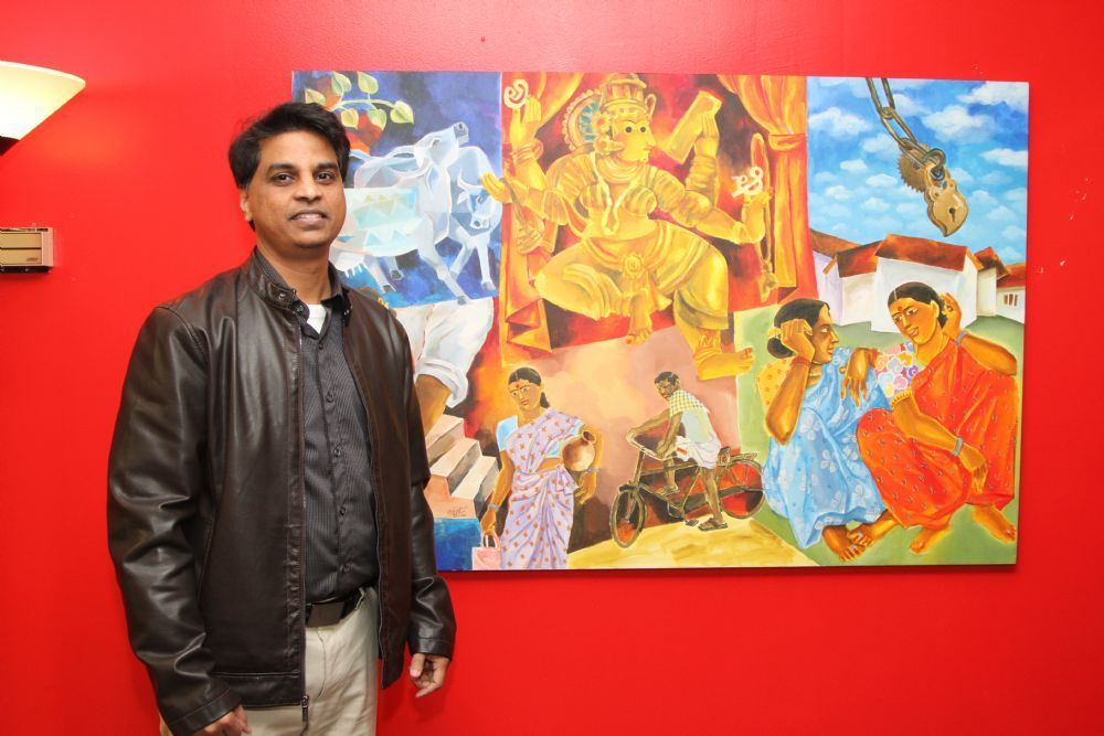 Telangana NRI Association organised an art exhibition with the paintings of Laxman Aeley at Telugupeople.com studio in Somerset, New Jersey. Famous director B.Narsing rao and art critic Anand Gadapa also attended the event.