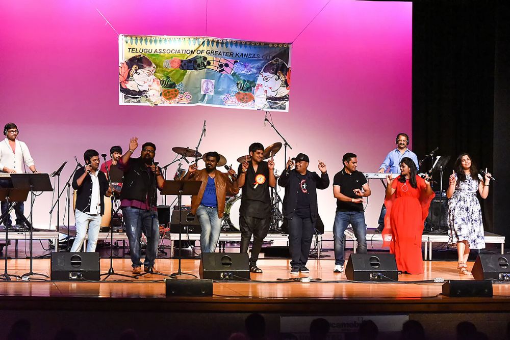 Tollywood music director SS Thaman gave a live concert in Kansas City that was presented by Telugu Association Of Greater Kansas City (TAGKC) recently at Blue Valley Southwest high school. Singers Deepak, Geetha Madhuri, Sameera, Sri Krishna and Deepu also took part.