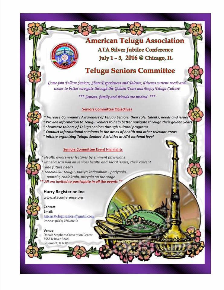 Grand celebrations of ATA- American Telugu Association, Silver Jubilee year will be held from July 1st- July 3rd at Rosemont Convention Center in Chicago, Illinois.