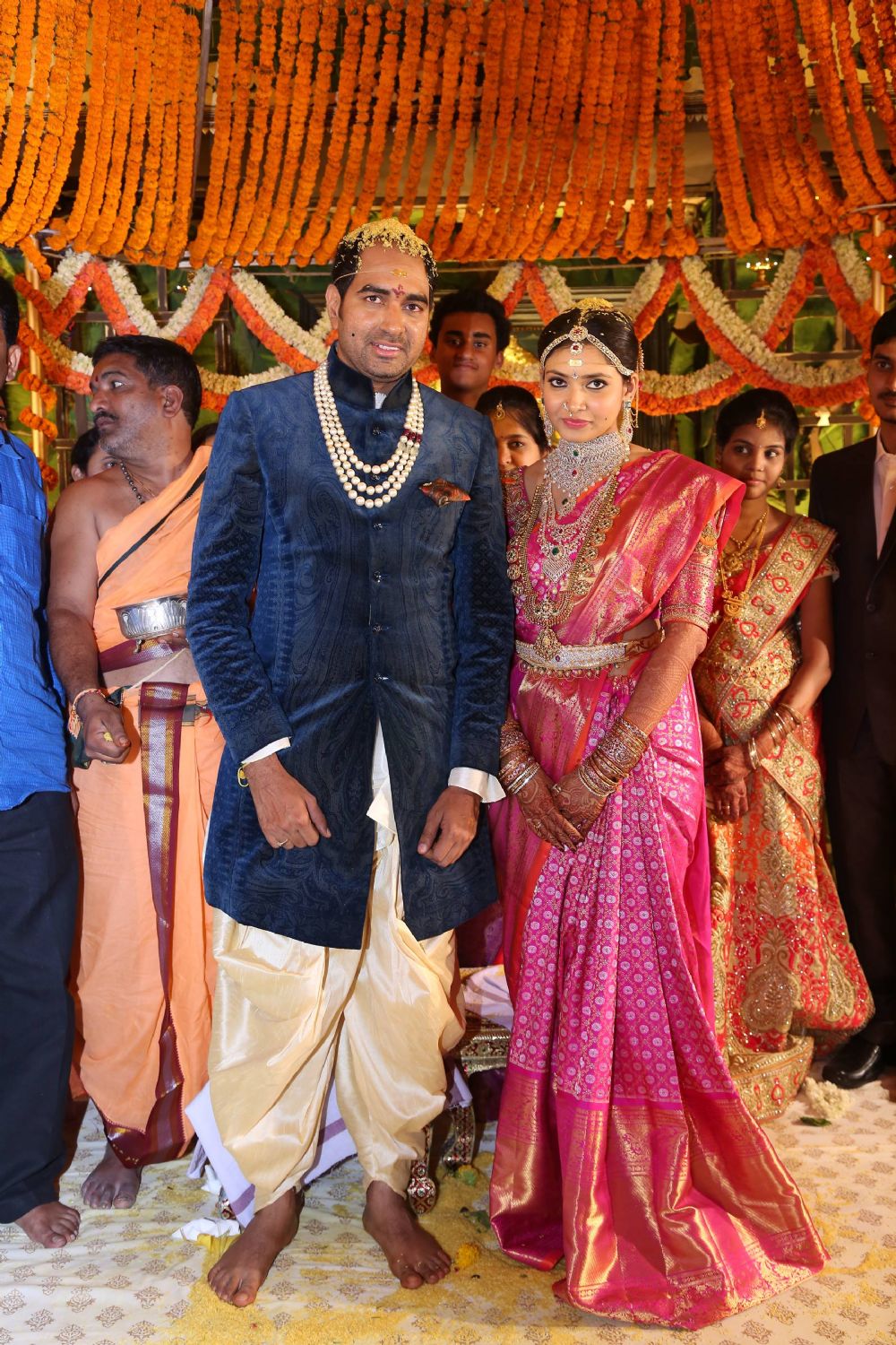 Director Krish married Ramya at a grand ceremony held in Golkonda resorts in Hyderabad on Sunday evening. Chiranjeevi, Balakrishna, Allu Arjun, Rakul Preeth Singh and many other prominent film personalities attended the event.