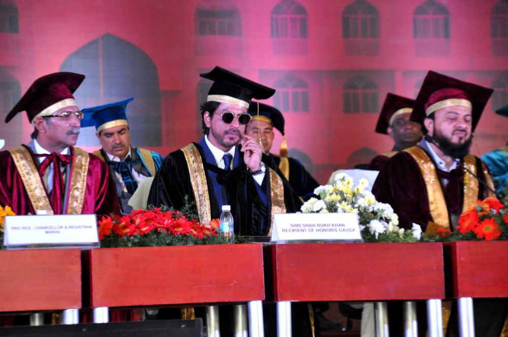 Bollywood actor Shah Rukh Khan and Rekhtha Foundation founder Sanjiv Saraf, receives Honorary Doctorates by the Maulana Azad National Urdu University at its sixth convocation held on Monday.