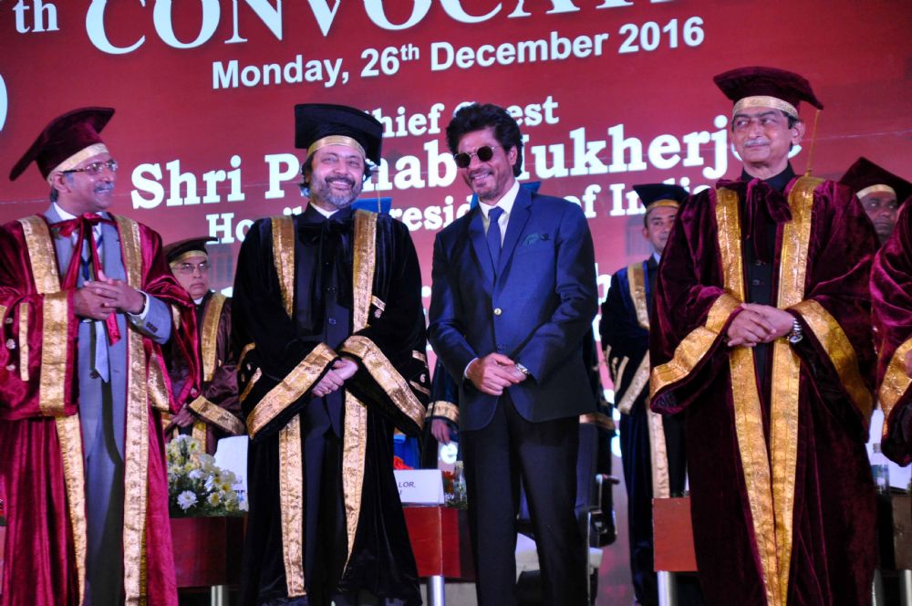 Bollywood actor Shah Rukh Khan and Rekhtha Foundation founder Sanjiv Saraf, receives Honorary Doctorates by the Maulana Azad National Urdu University at its sixth convocation held on Monday.