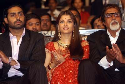 Amitabh Bachchan with Abhishek and Aishwarya at Mumbai Police Diwali Mela on Sunday night.