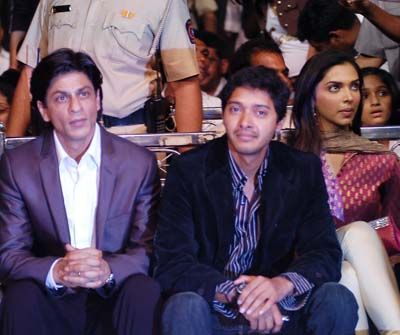Om Shanti Om actors Shahrukh Khan, Shreyas Talpade, Deepika Padukone at Mumbai Police Diwali Mela on Sunday night.