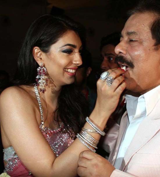Actress Yukta Mukhi with Subroto Rai of Sahara during the celebration of New Year 2008 at Sahara Star hotel in Mumbai on Monday midnight.