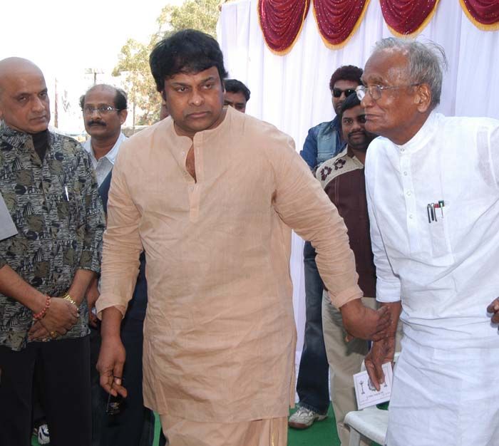 The 10th day ceremony of Chiranjeevi's father Venkata Rao was held at Cyber Gardens near Hitech City in Hyderabad on Thursday. Chiranjeevi's family paid floral tributes to their beloved man. Eminent people from film industry to politics attended the memorial and joined Chiranjeevi's family in paying tributes to the departed soul. The much talked about Central Minister Dasari Narayana Rao's presence aroused some curious moments among the visitors. Chiranjeevi personally accompanied Dasari to the portrait of his late father. Among other noted personalities who attended the ceremony were Akkineni Nageswara Rao, D.Rama Naidu, K. Raghavendra Rao, MS Reddy, Gaddar, Nagarjuna and key persons of Chiru, Pavan's fans associations. Later, Chiranjeevi's family thanked one and all for sharing their feelings by making a personal visit in the moments of their grief caused by the sudden demise of family doyen Venkata Rao.